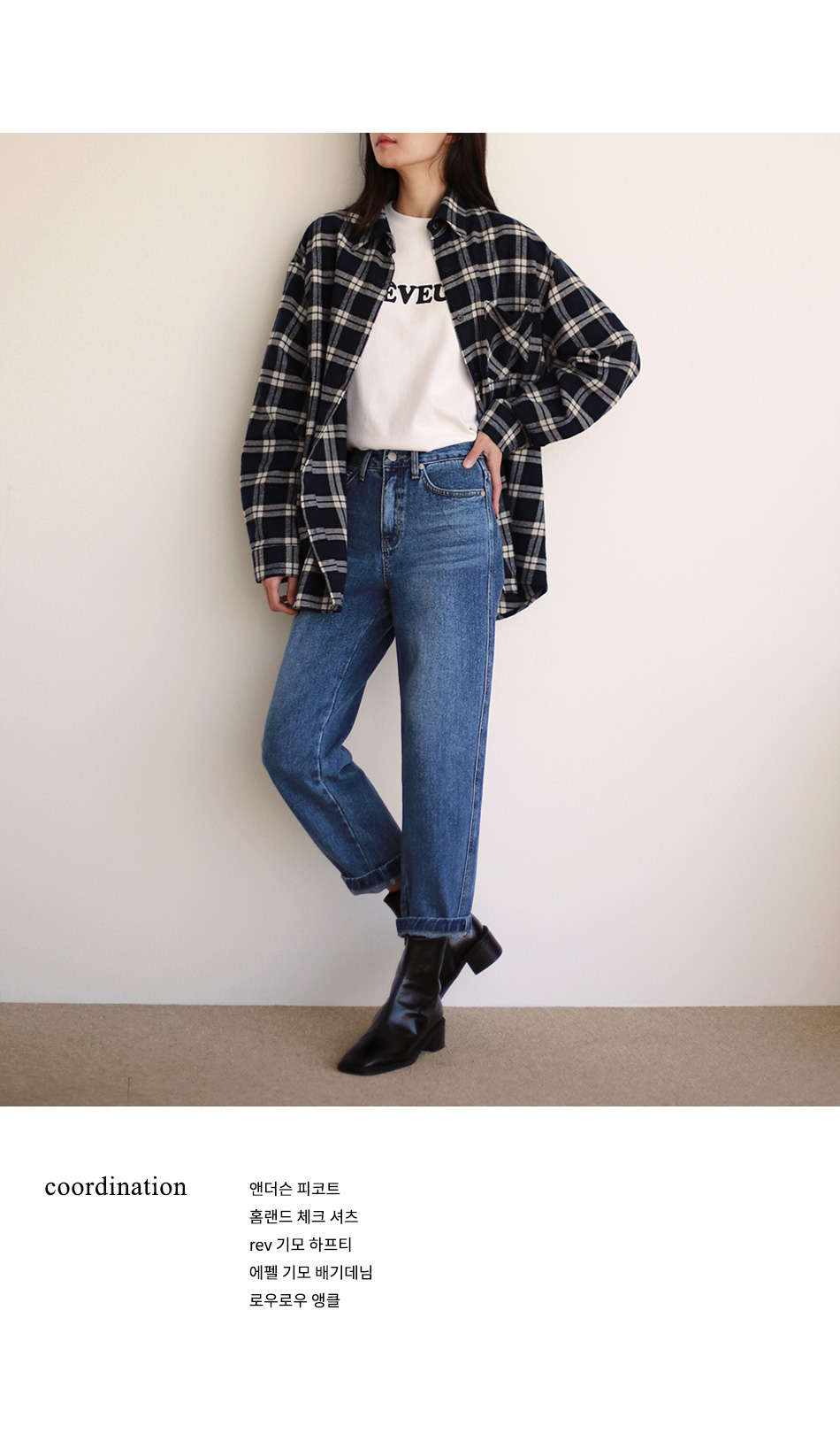 전체적으로 여유있는 배기라인의 데님 팬츠에요.