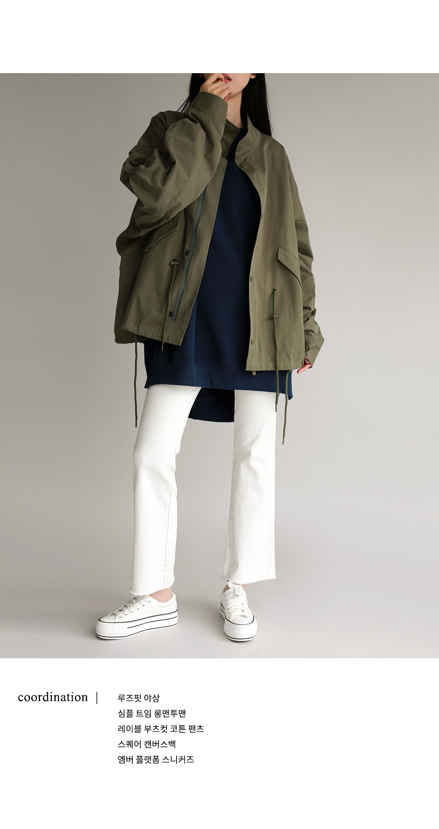 | 모델 착용정보 | J.Y 모델 (키 167cm, 상의 마른 55, 하의 26 inch, 신발 240mm) : 화이트 E.A 모델 (키 168cm, 상의 마른 55, 하의 25 inch, 신발 240mm) |