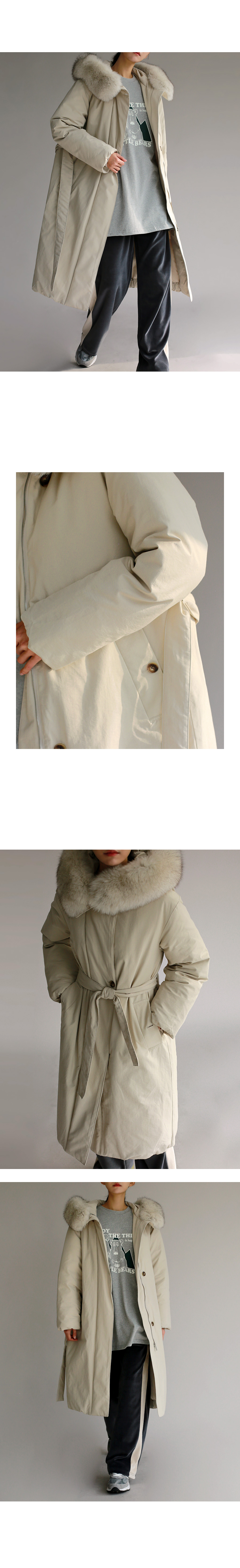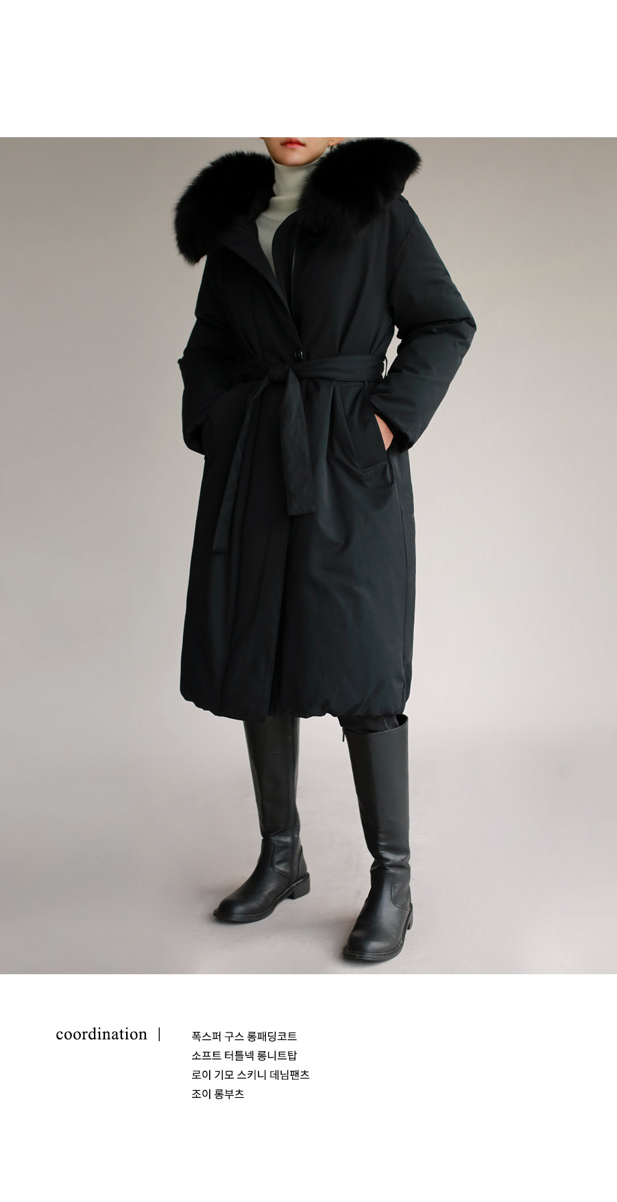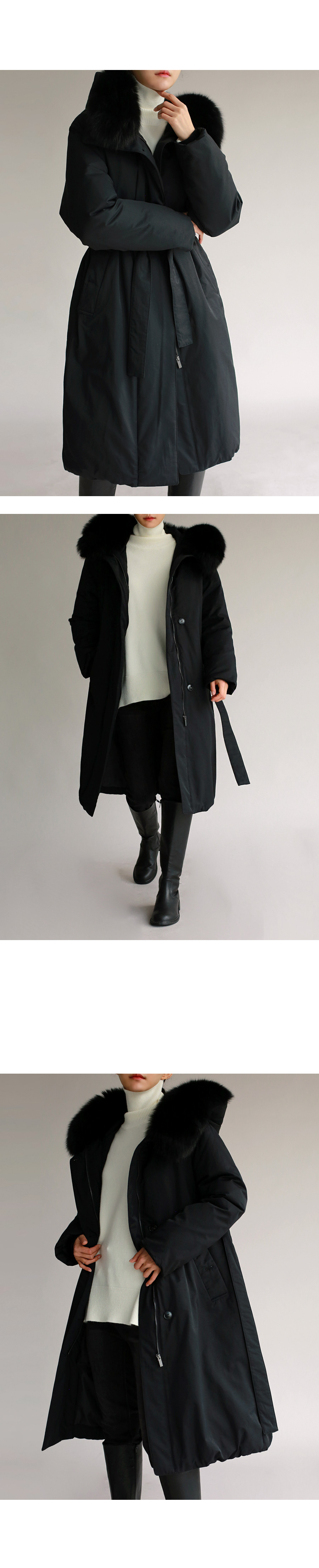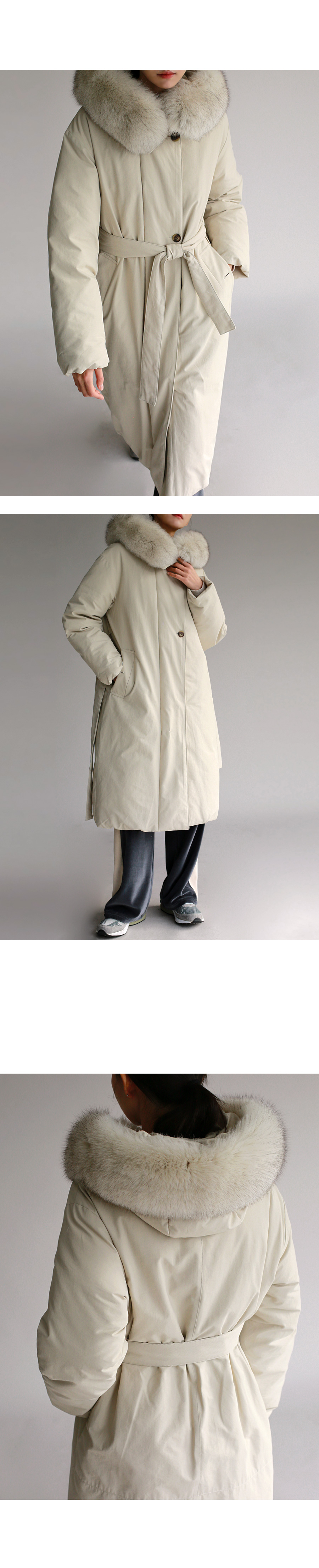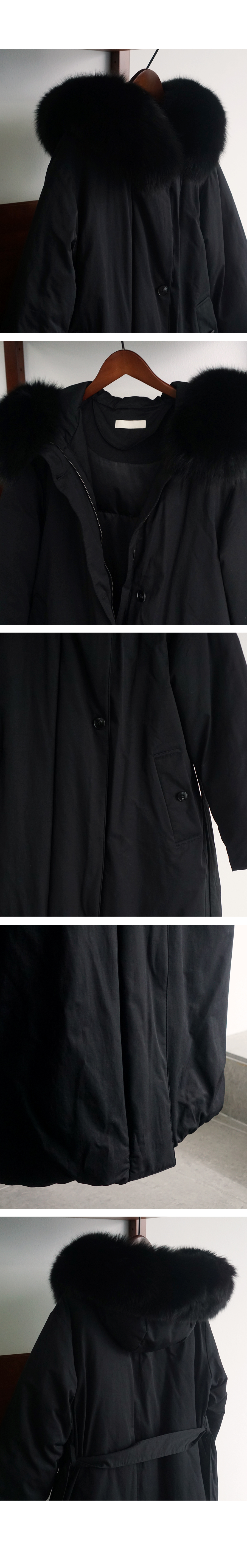| 소재 | 후드퍼 : 리얼 폭스퍼 (탈부착가능) 겉감 : 면 63%, 나일론 37% / 안감 : 폴리 100% / 충전재 : 거위솜털 80%, 깃털 20% 배색(소매시보리) : 폴리 67%, 아크릴 25% 모 5%, 폴리우레탄 3% |
