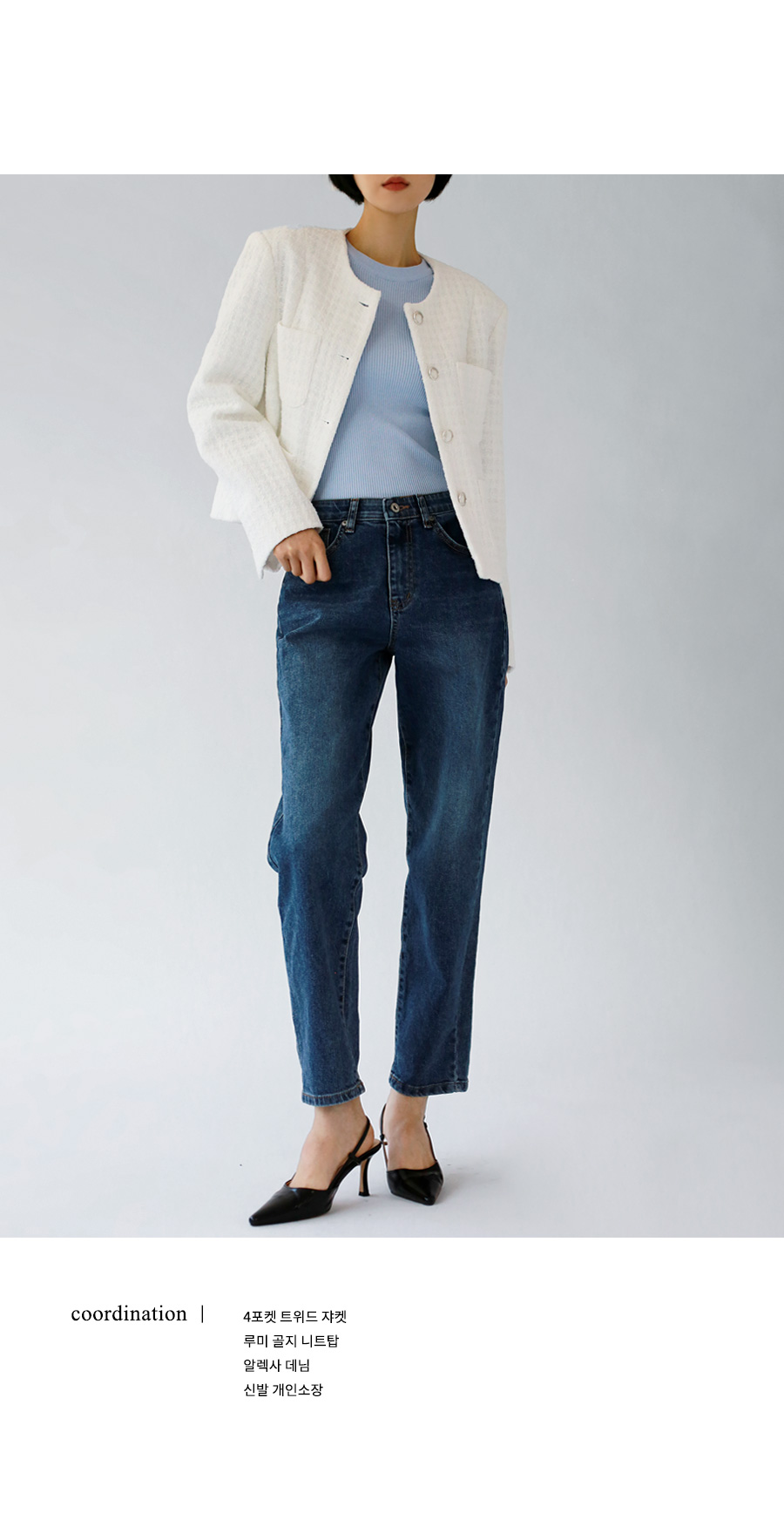 어깨패드로 깔끔한 아웃핏과