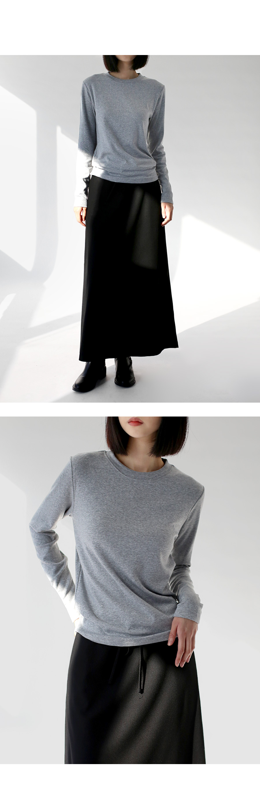 | 모델 착용정보 | J.Y 모델 (키 167cm, 상의 마른 55, 하의 26 inch, 신발 240mm) E.A 모델 (키 168cm, 상의 마른 55, 하의 25 inch, 신발 240mm) : 멜란지그레이, 네이비 |