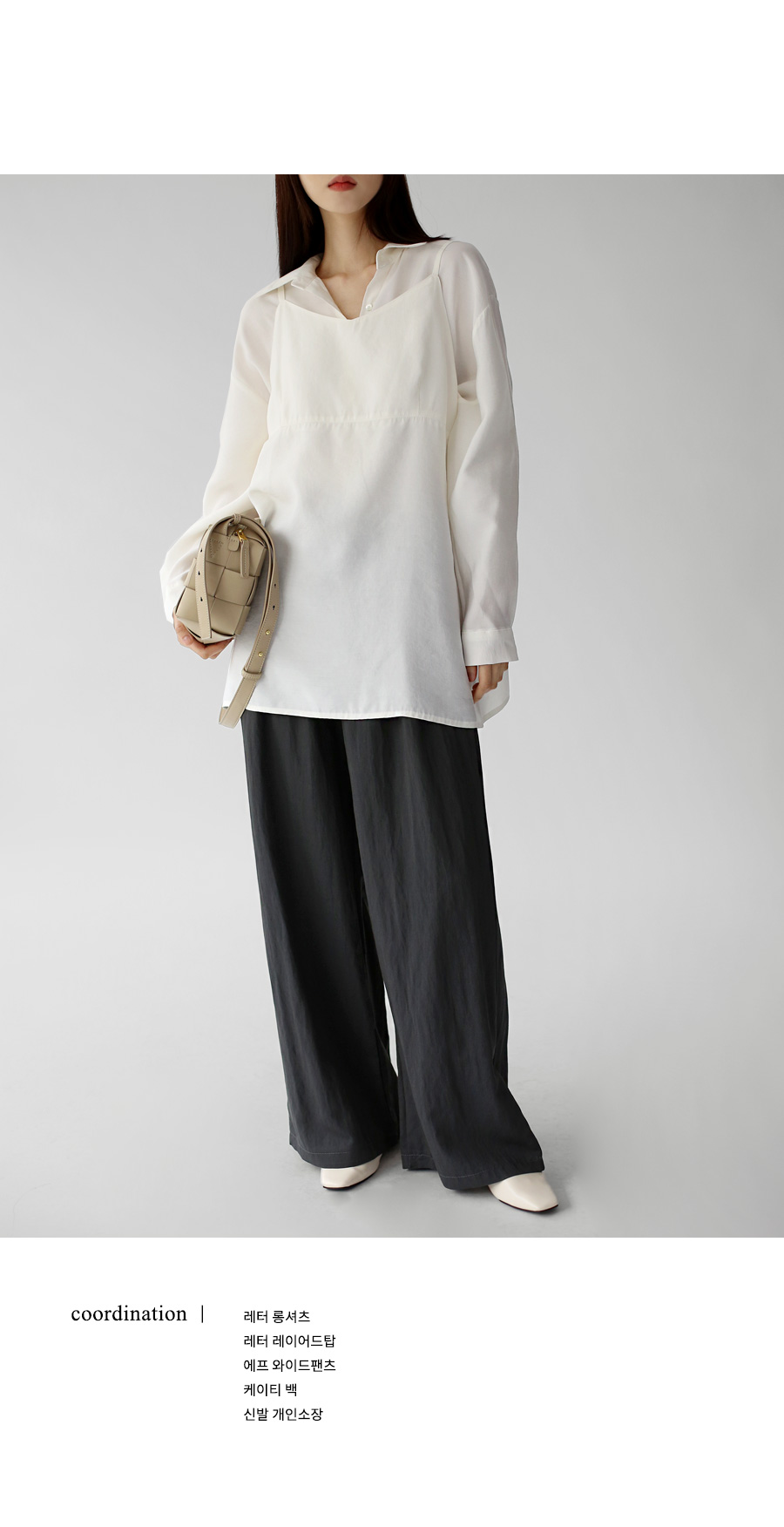 레터 롱셔츠와 셋업 구성으로