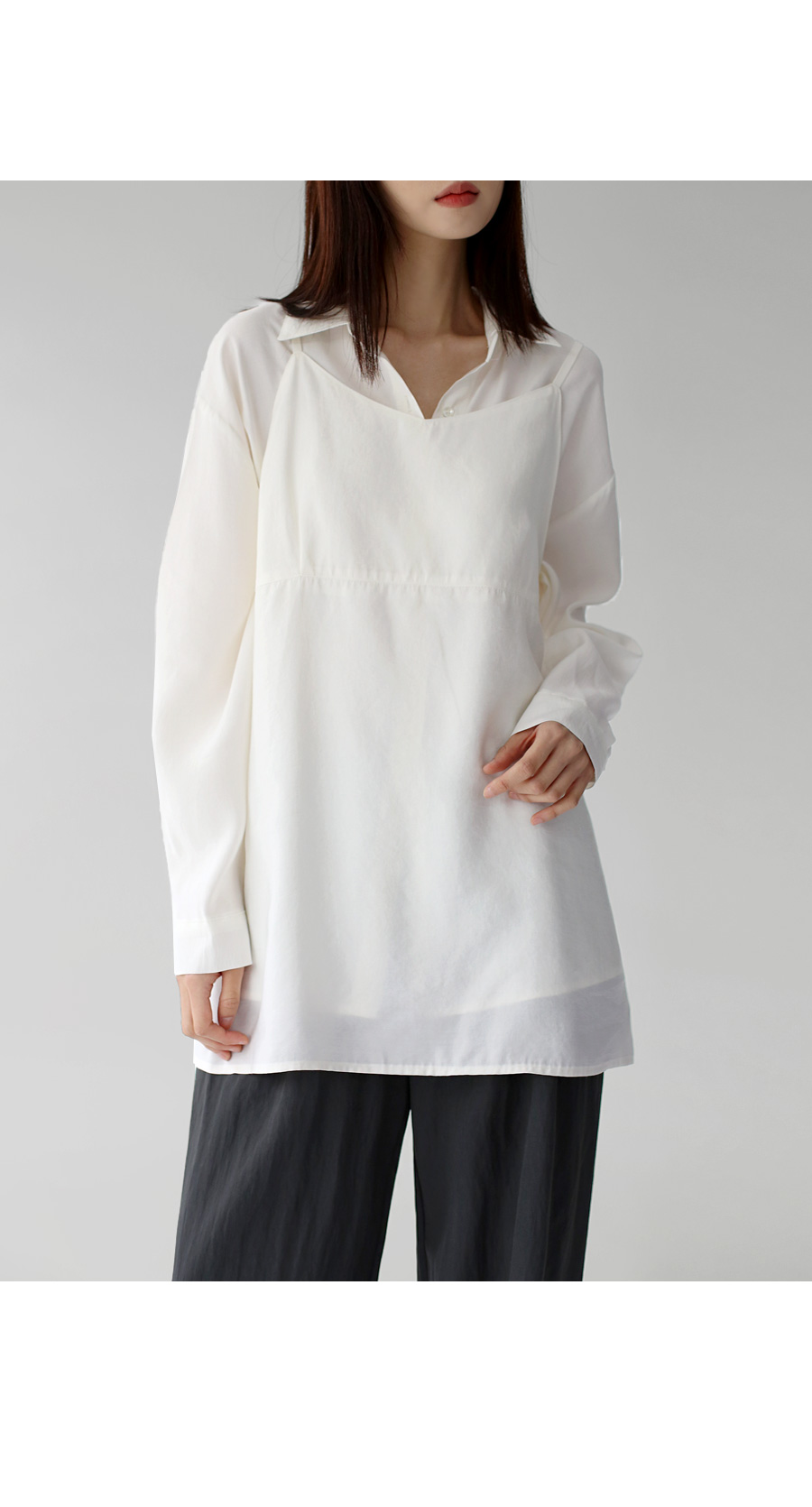 셔츠 밖으로 뷔스티에처럼 연출하거나