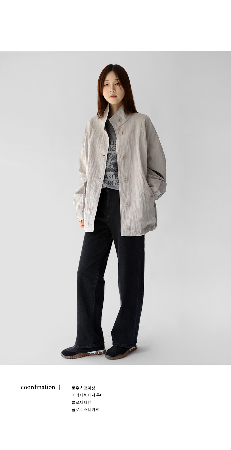 | 모델 착용정보 | J.Y 모델 (키 167cm, 상의 마른 55, 하의 26 inch, 신발 240mm) E.A 모델 (키 168cm, 상의 마른 55, 하의 25 inch, 신발 240mm) : 피그먼트그레이 |