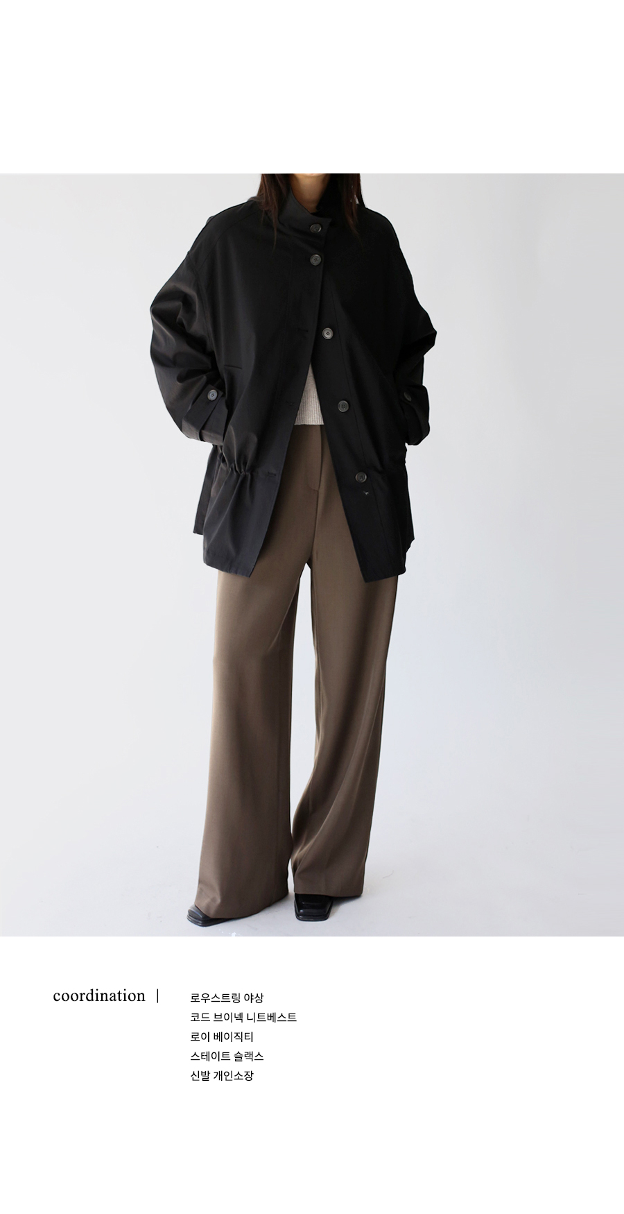 슬랙스, 데님 등 하의 매치도 다양하게 할수 있어요.