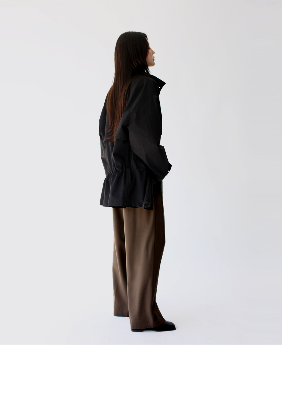 + 여유있는 핏이며 골반 정도 오는 길지 않은 길이감.