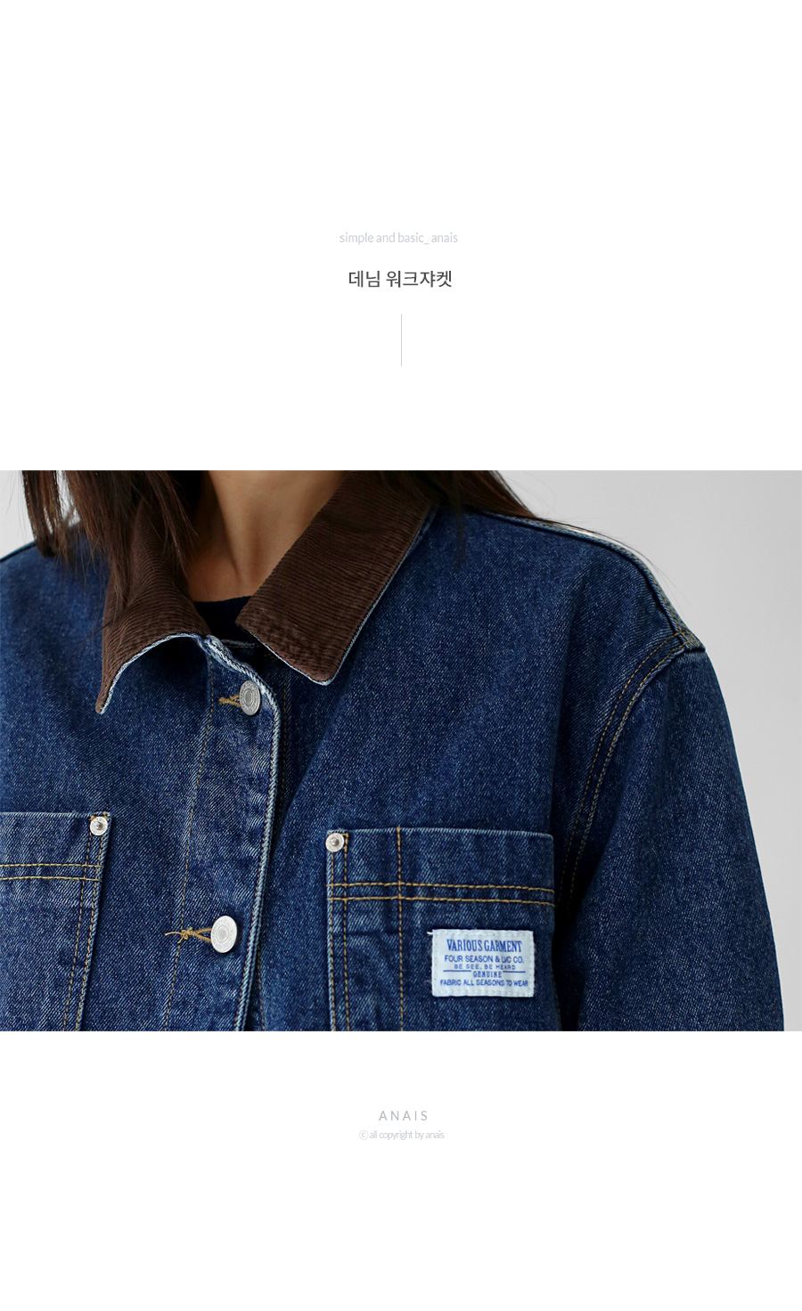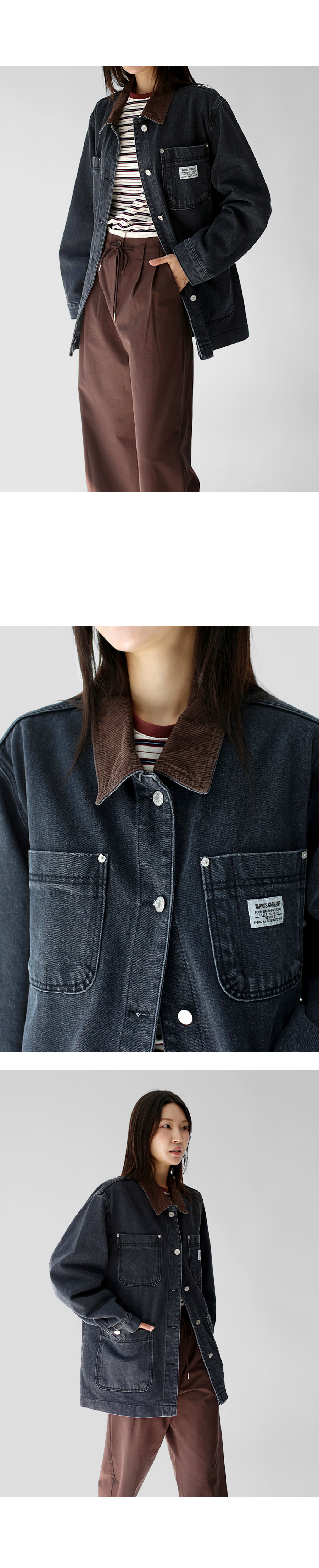 탄탄하고 도톰한 넌스판 데님에 카라는 코듀로이.