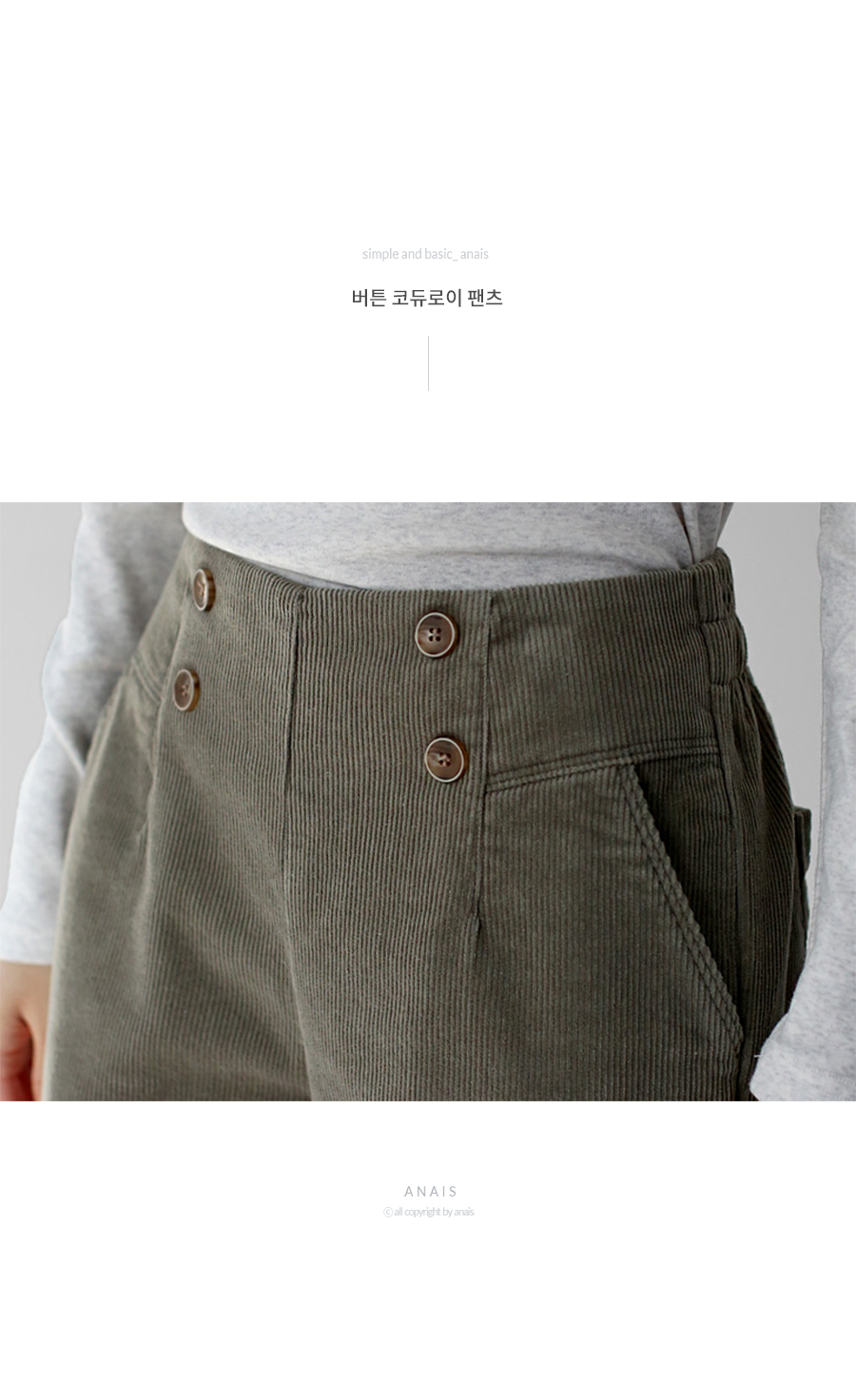 | 소재 | 코튼 97%, 스판 3% (Cotton 97%, Spandex 3%) |