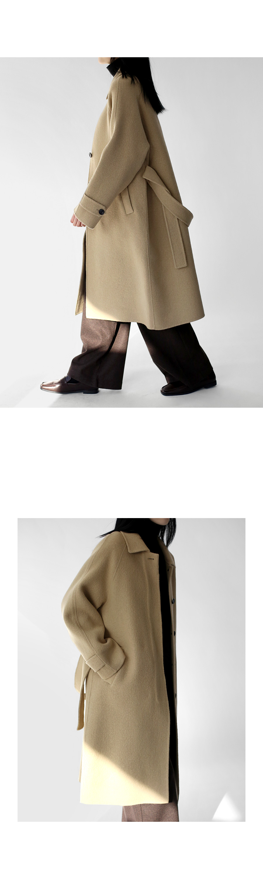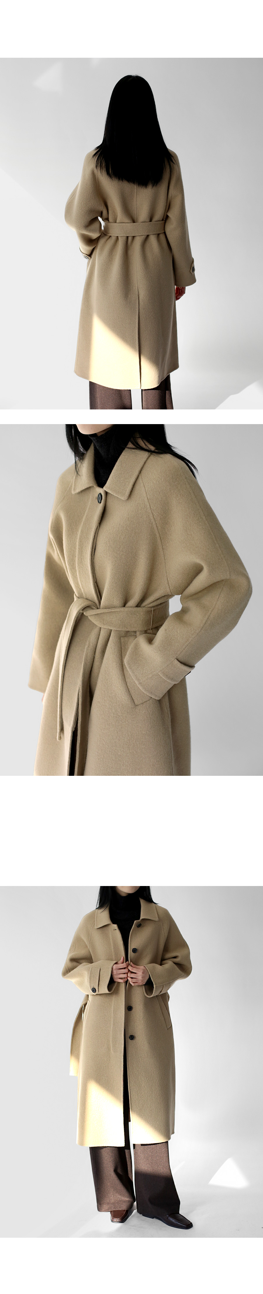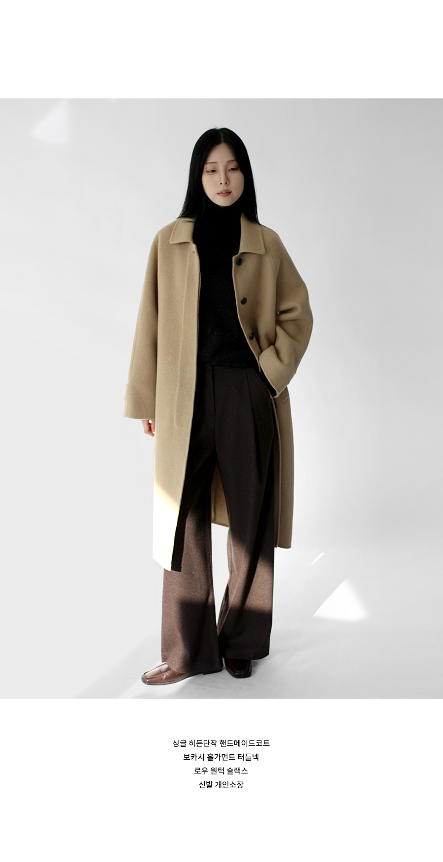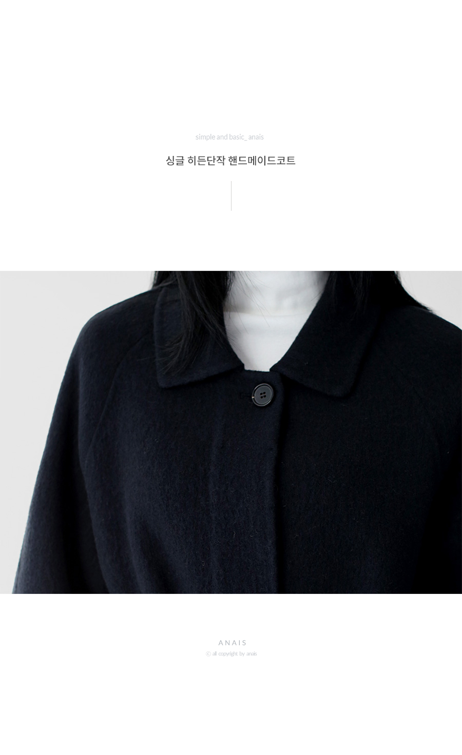 싱글 브레스티드의 단아한 핸드메이드코트.