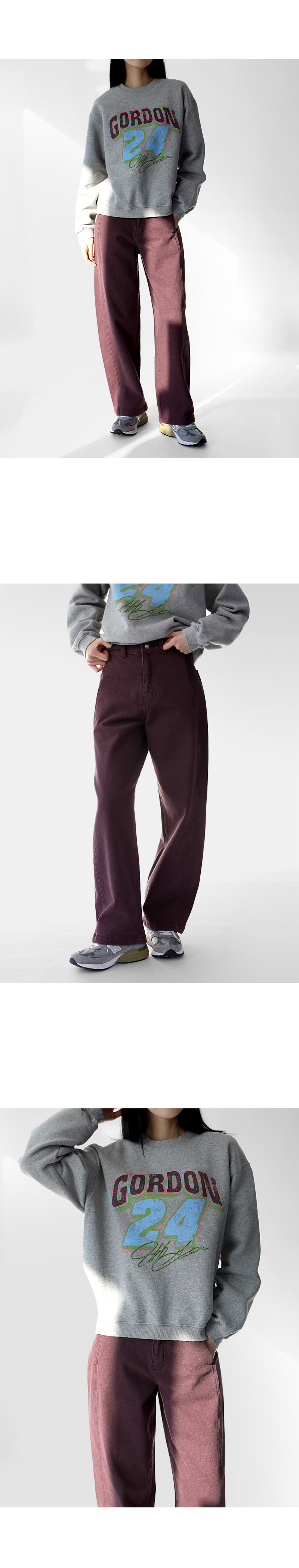 | 모델 착용정보 | J.Y 모델 (키 167cm, 상의 마른 55, 하의 26 inch, 신발 240mm) E.A 모델 (키 168cm, 상의 마른 55, 하의 25 inch, 신발 240mm) : 멜란지그레이 |