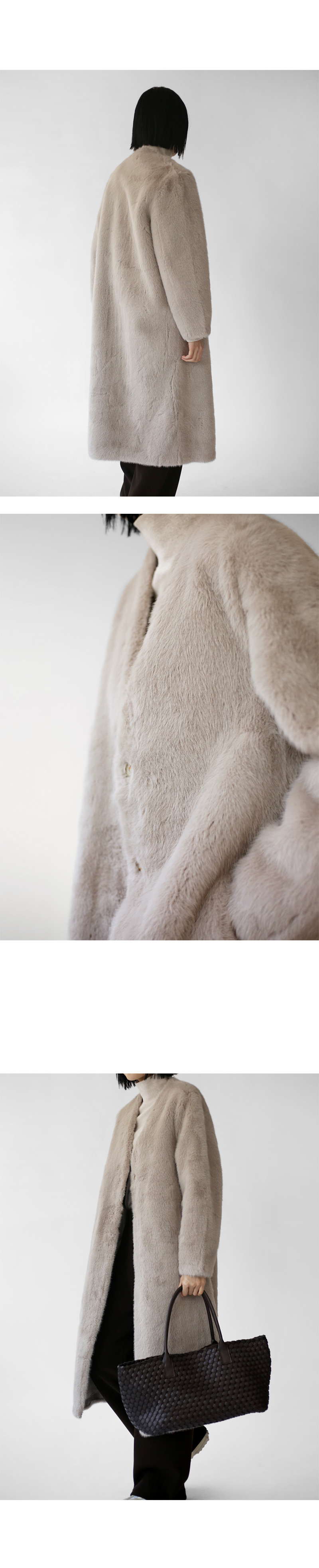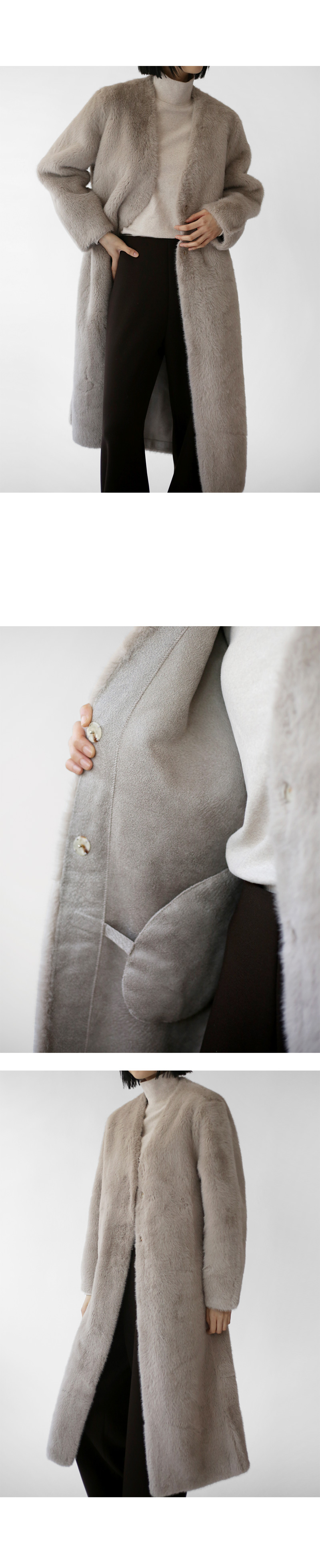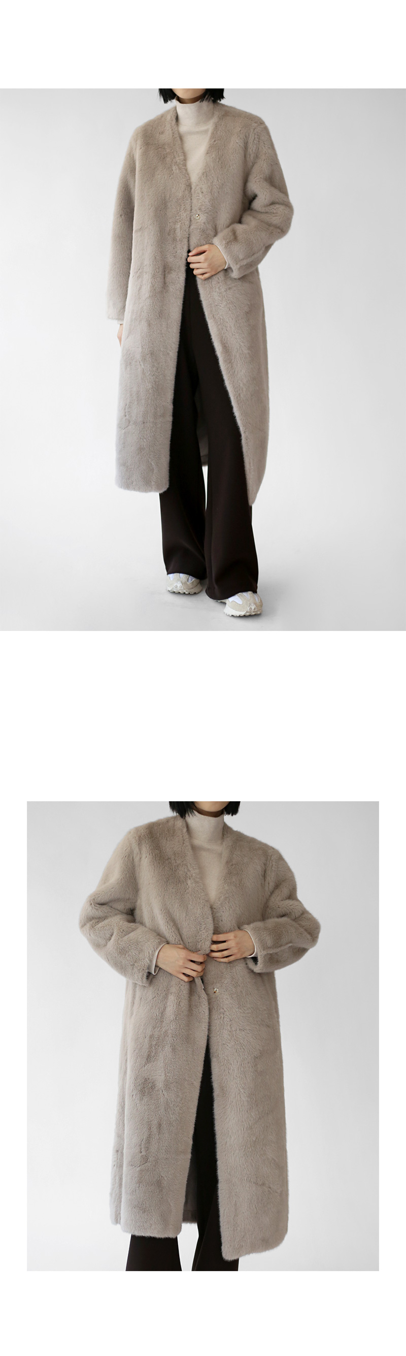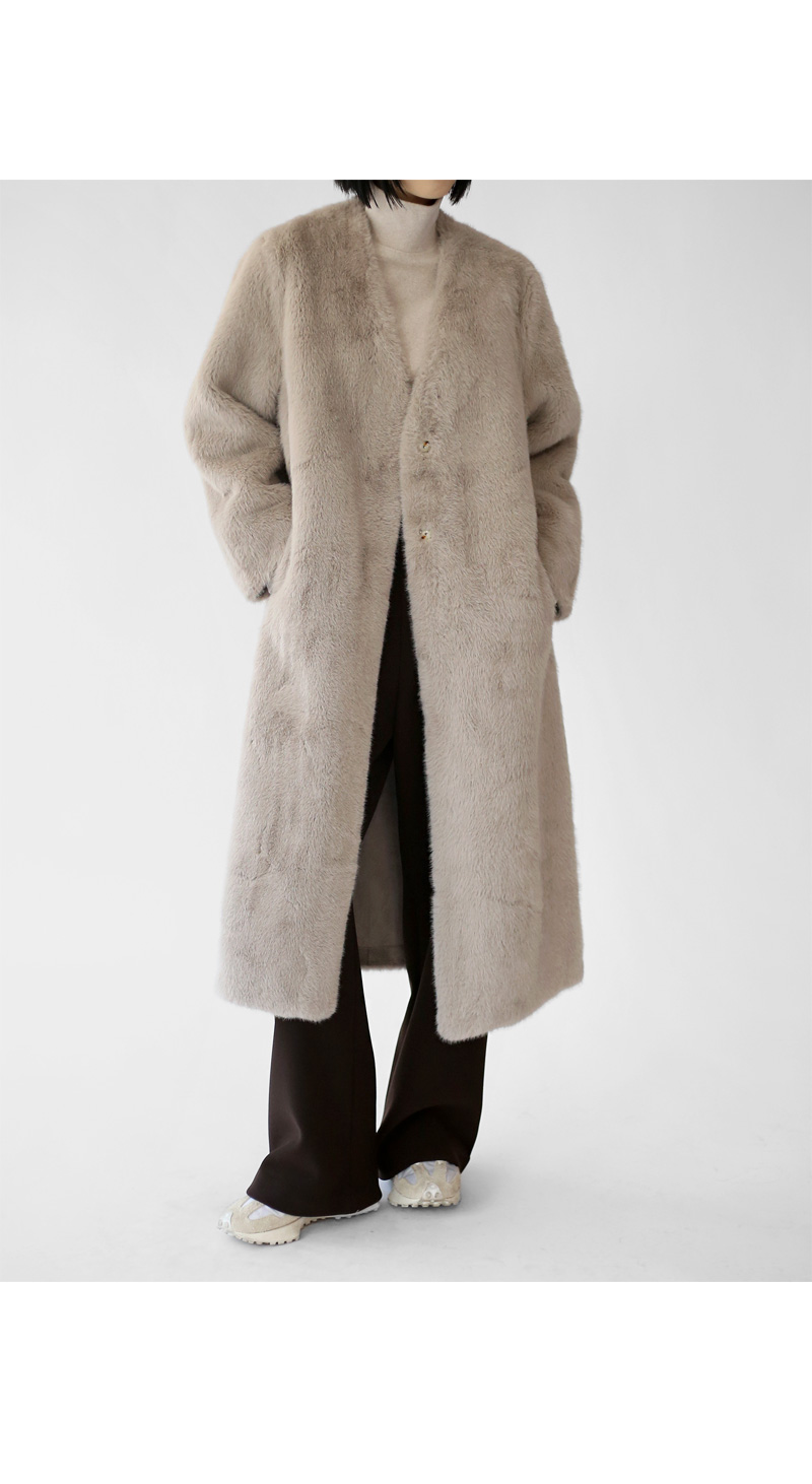V-neck eco-fur long coat (25%)