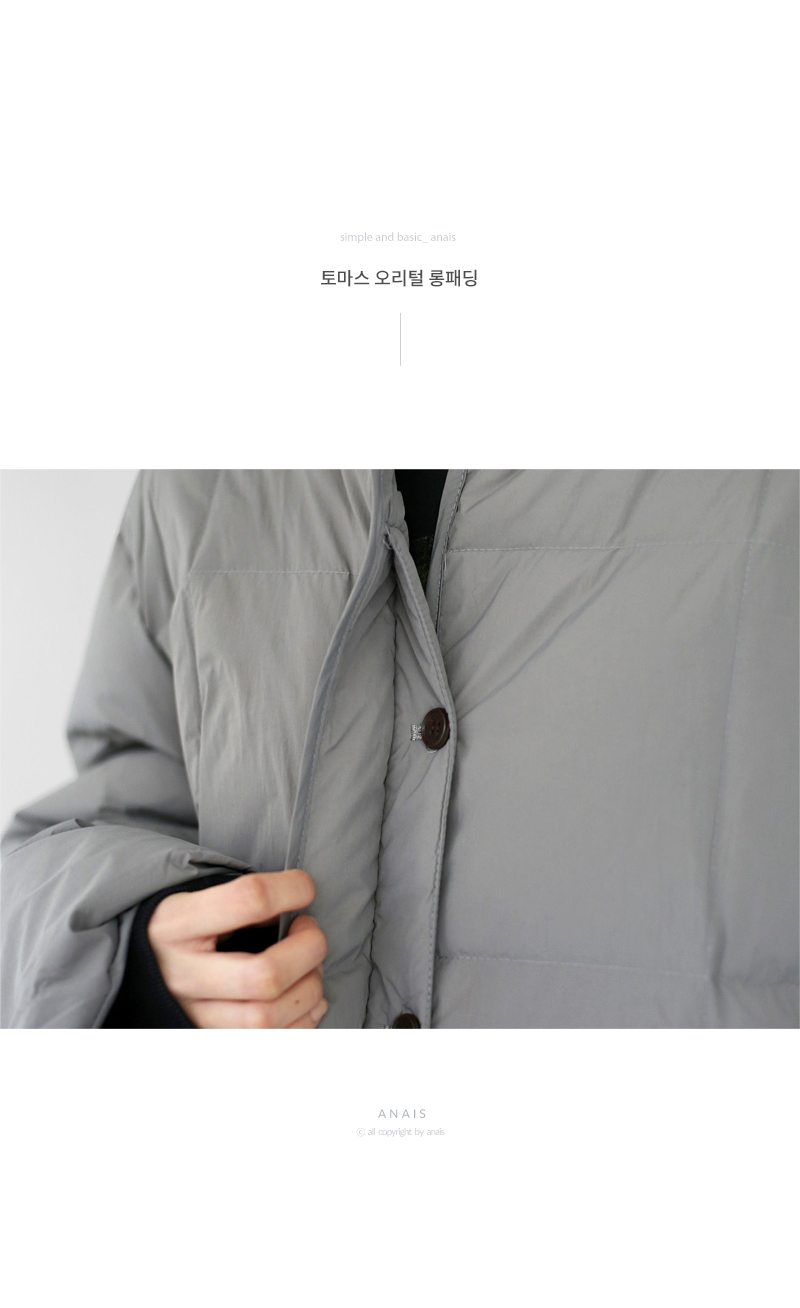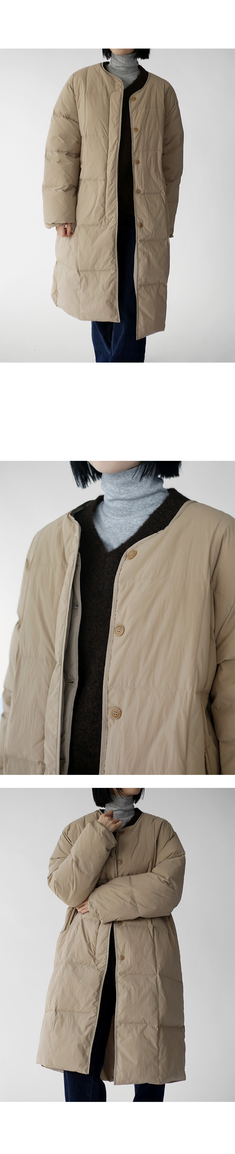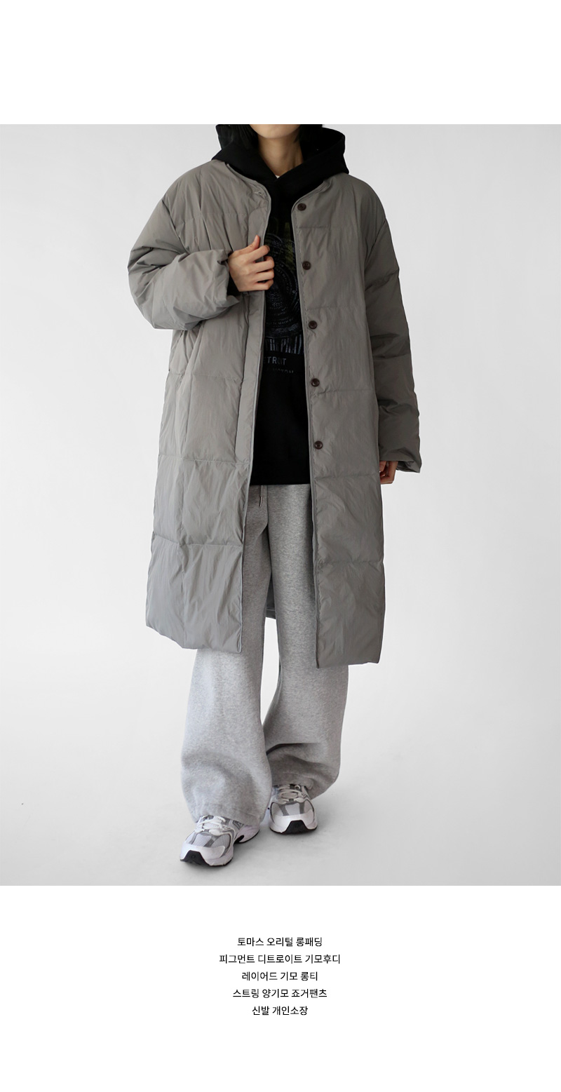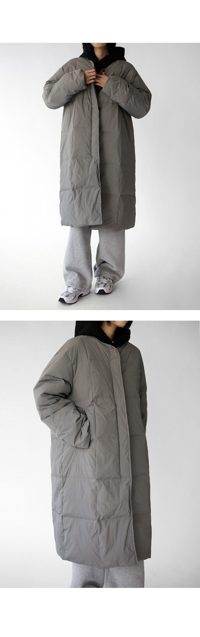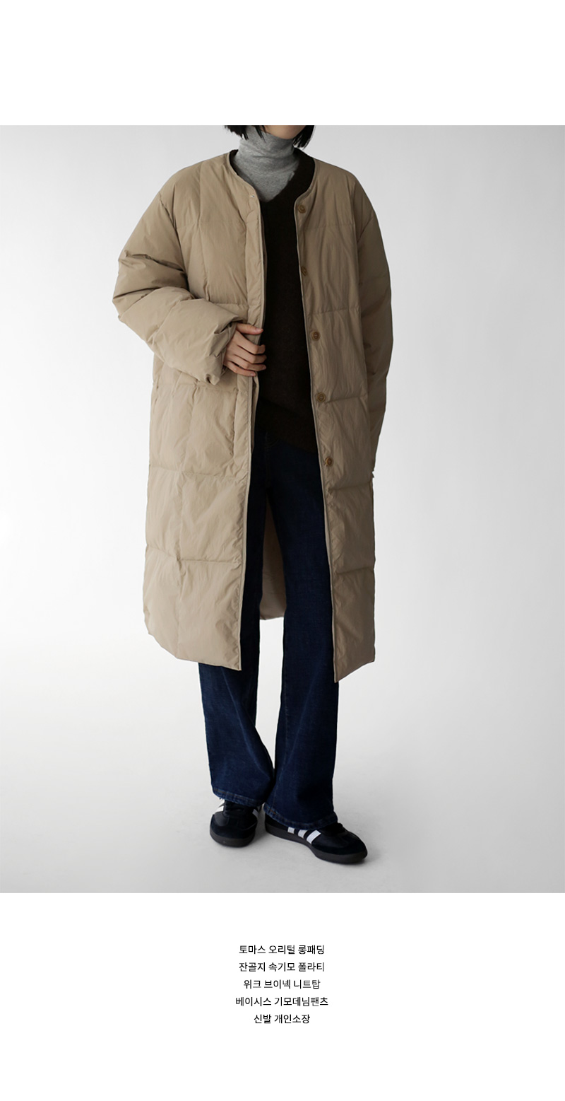 버튼이 보이지 않는 히든 단작 오리털 롱패딩.