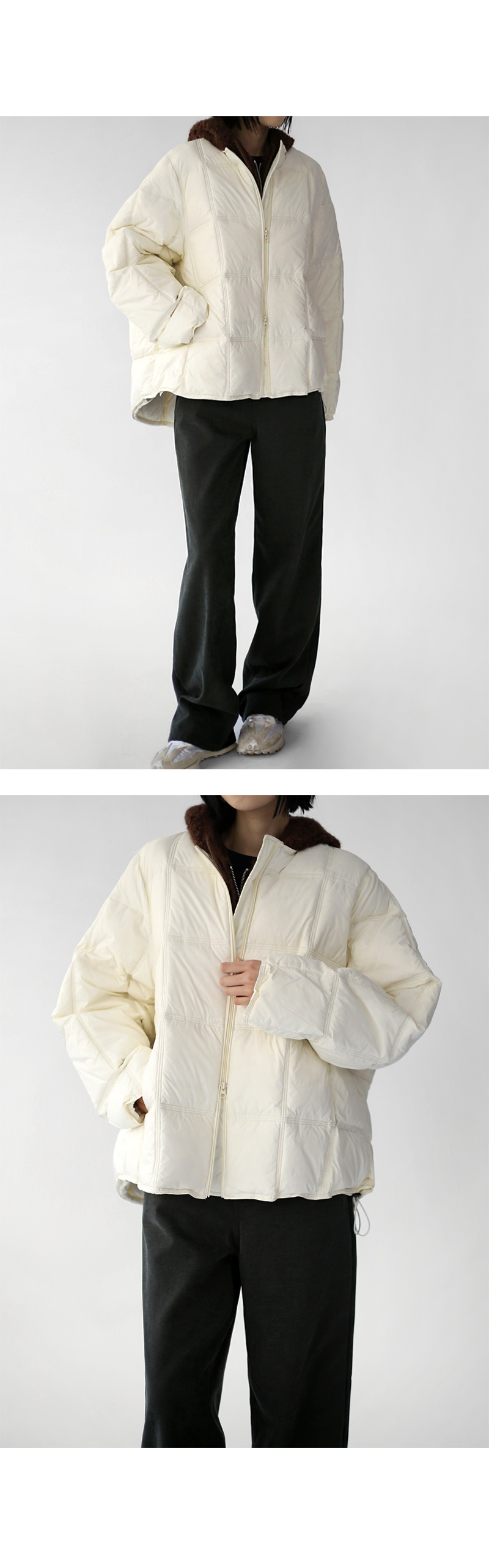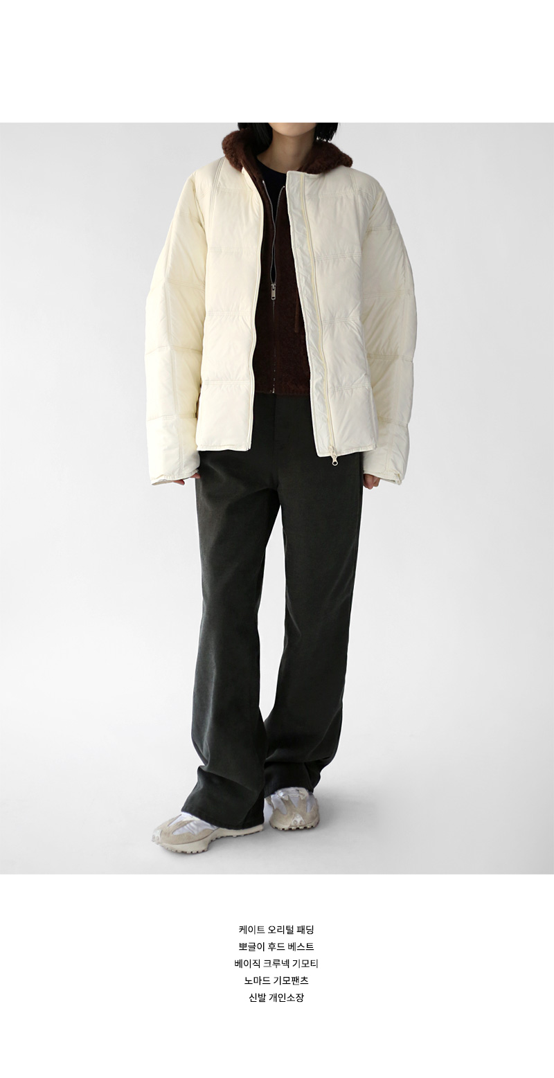 | 소재 | 겉감 ; 폴리에스테르 100% / 안감 ; 나일론 100% / 충전재 오리털 100% (솜털 50%, 깃털 50%) (Outer : Polyester 100% / Lining : Nylon 100% / Filling : Duck down 50%, Feather 50%) |