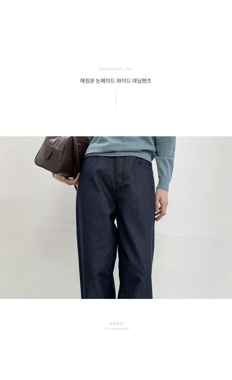 [New Arrivals 7% Off - Until 11am on the 21st] Herringbone Non-Fade Wide Denim Pants