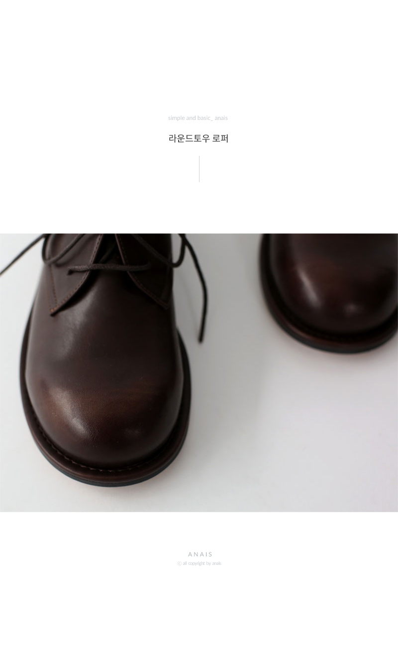 둥근 쉐입으로 볼이 넓게 나온 로퍼에요.