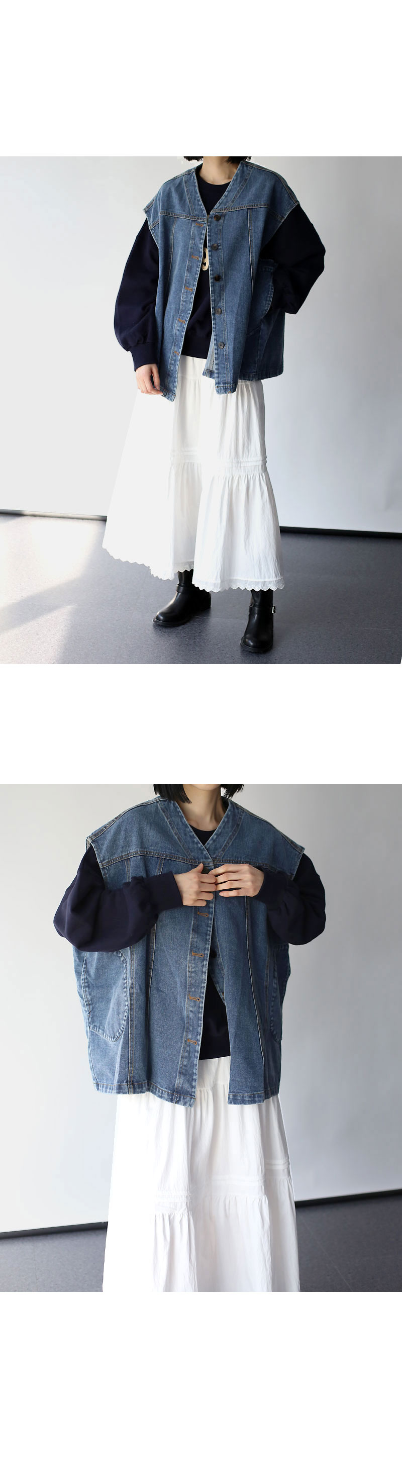 많이 루즈한 핏의 데님 베스트에요!
