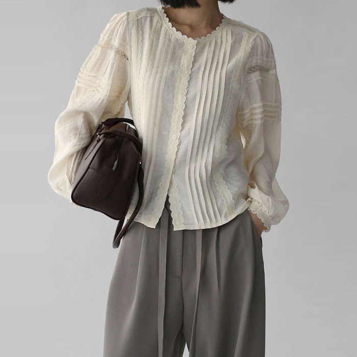 네크라인을 따라 귀여운 레이스가 배색되어 있고