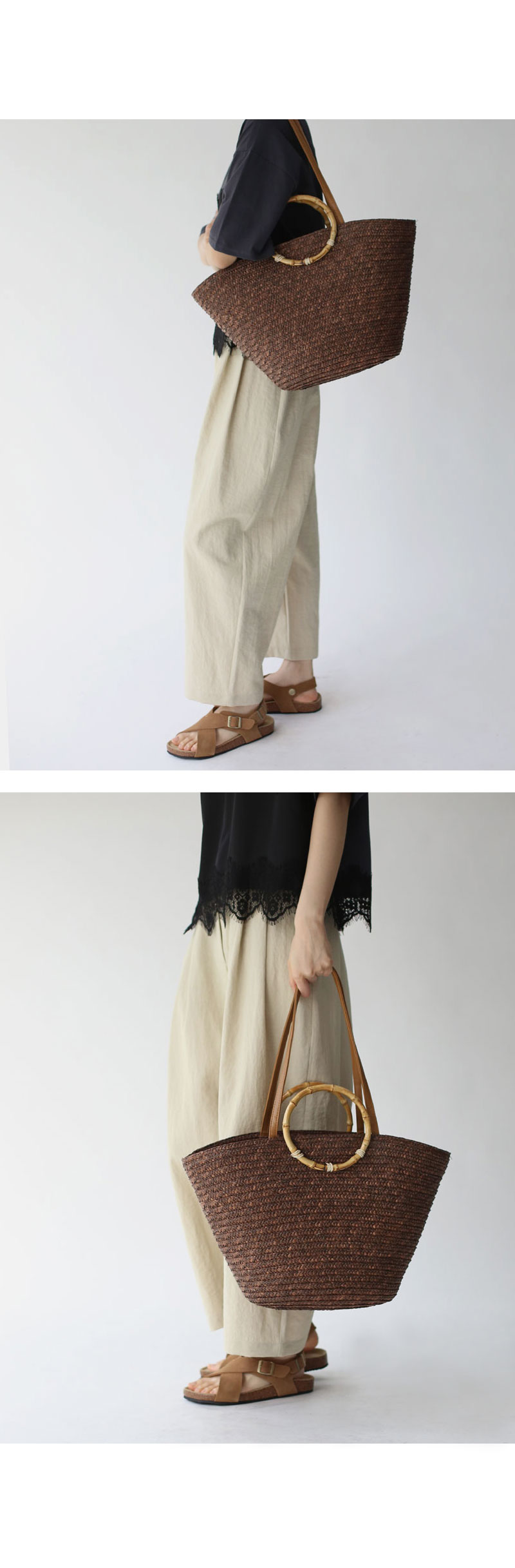 퀄리티 좋은 라탄 소재의 바스켓백.