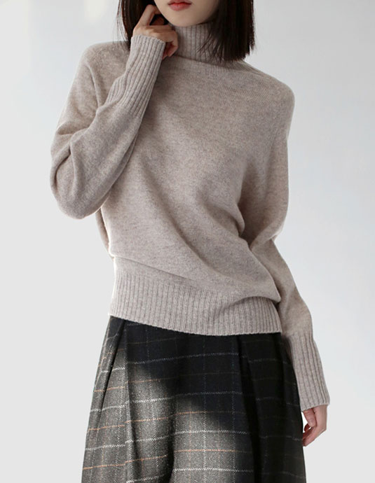 • High neck whole garment knit top