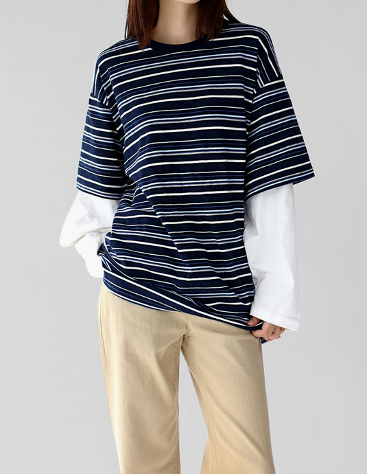 • Striped layered long tee