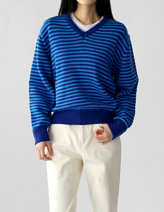 • [FW New Arrival 5% Off] Stripe V-neck Knit Top