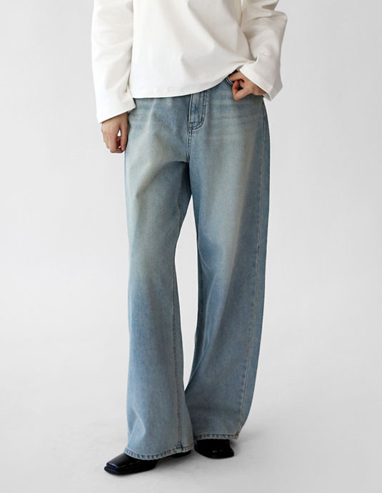 • Light-washed fleece denim pants