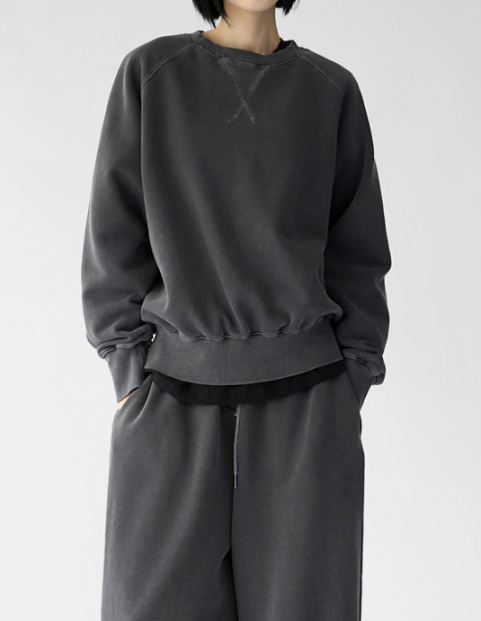 • Pigment-washed fleece man-to-man