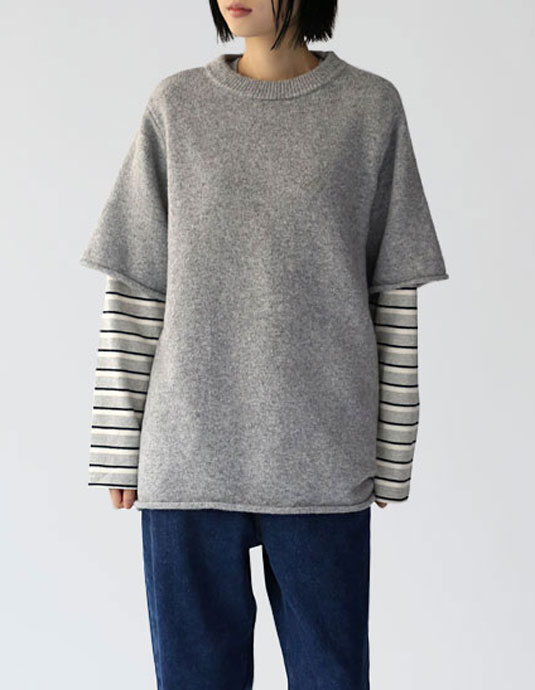 • Round neck short sleeve long knit top
