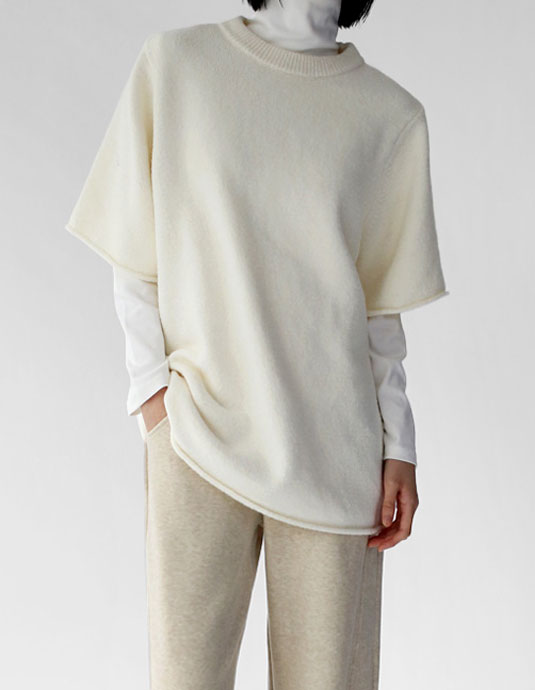 • Round neck short sleeve long knit top
