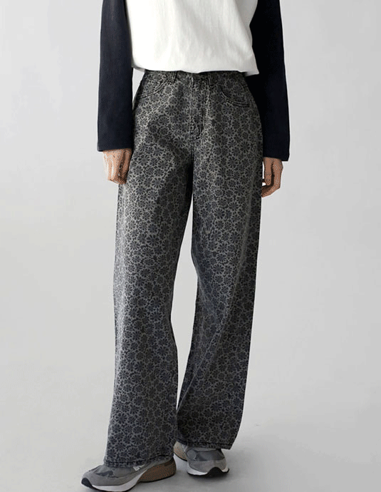 • Flower-washed denim pants